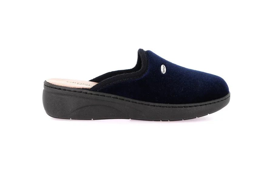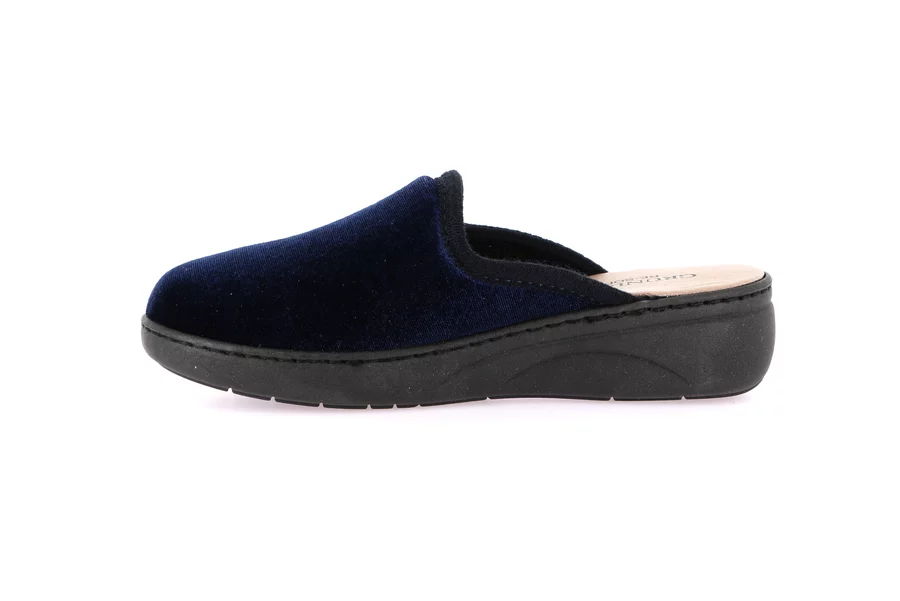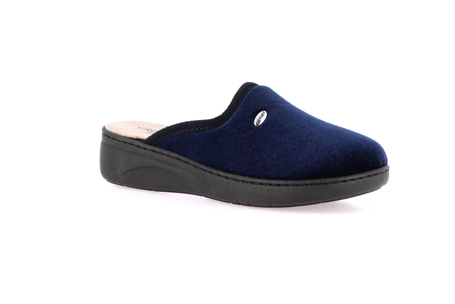 Klassischer Hausschuh. Die Re-Soft-Einlegesohle dämpft den Aufprall auf den Boden und merkt sich die Form des Fußes. Es handelt sich um ein Made in Italy-Produkt mit einem Design made in Grünland.
