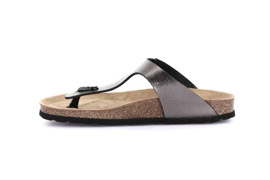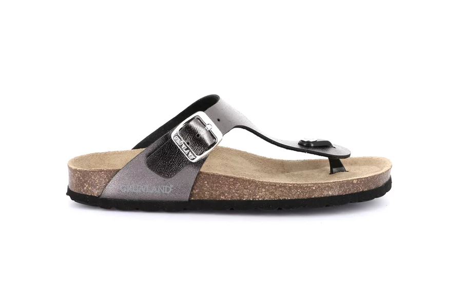 La tomaia di questa ciabatta è realizzata con materiali riciclati e sostenibili. Amatissima per il colore perlato, coccolerà i tuoi piedi nei mesi più caldi grazie al sottopiede in sughero naturale.