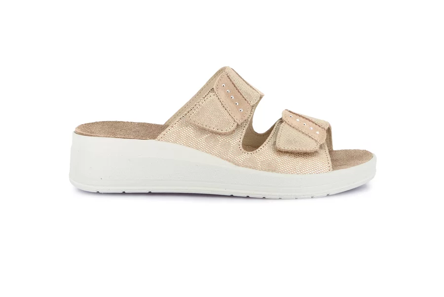 Chiusura a strappo, tomaia in morbida pelle e il sottopiede estraibile Re-Soft che ammortizza l’impatto al suolo e memorizza la forma del piede: DIDA è la ciabatta comfort dall'inconfondibile stile Grünland. La suola Conforma si adatta al tuo modo di camminare e dona sollievo ai piedi affaticati. Possiede una leggera zeppa per aiutare a sostenere al meglio la postura.