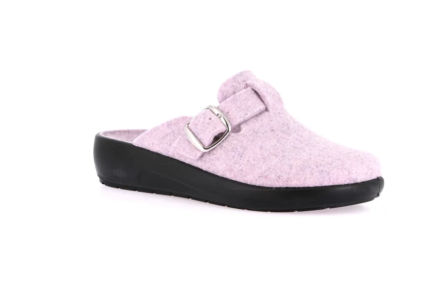 Sabot con leggera zeppa e tomaia in lana rigenerata: calda, leggera e traspirante, garantisce il massimo comfort e un'ottima calzata.