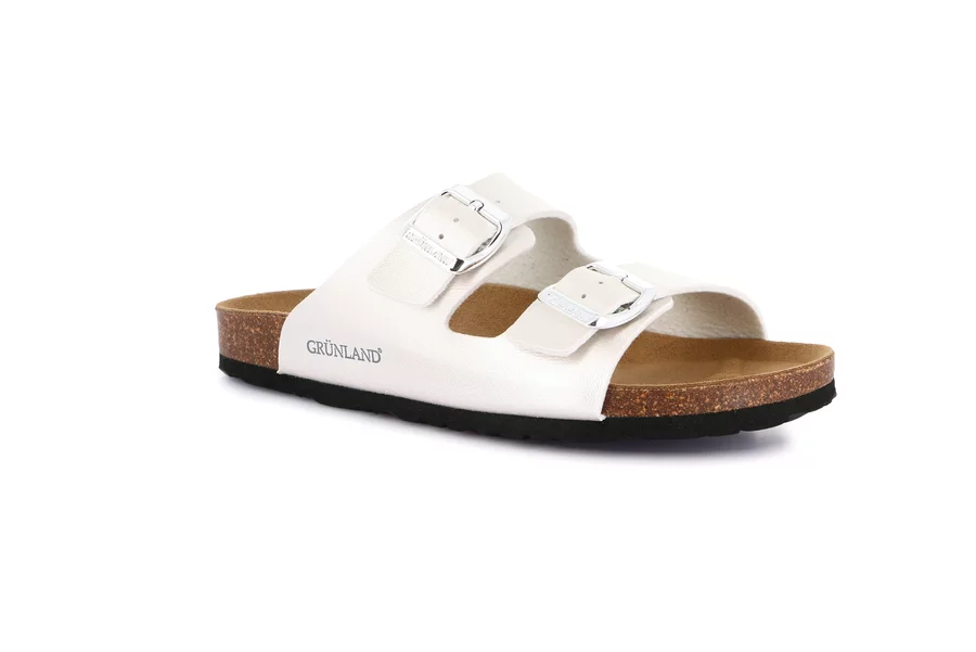 La tomaia di questa ciabatta è realizzata con materiali riciclati e sostenibili. Amatissima per il colore perlato, coccolerà i tuoi piedi nei mesi più caldi grazie al sottopiede in sughero naturale.