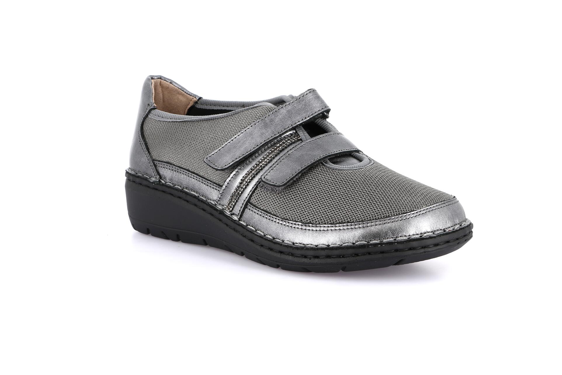 Grazie alla pianta maggiorata, NESI è perfetta per chi è alla ricerca di una calzatura che rimanga comoda anche dopo molte ore e che doni sollievo ai piedi stressati. È dotata della suola Grünland Conforma, in grado di adattarsi al tuo modo di camminare, e del sottopiede estraibile in sughero naturale, morbido e traspirante. La sua tomaia è realizzata in materiale elasticizzato. È un prodotto Made in Italy.